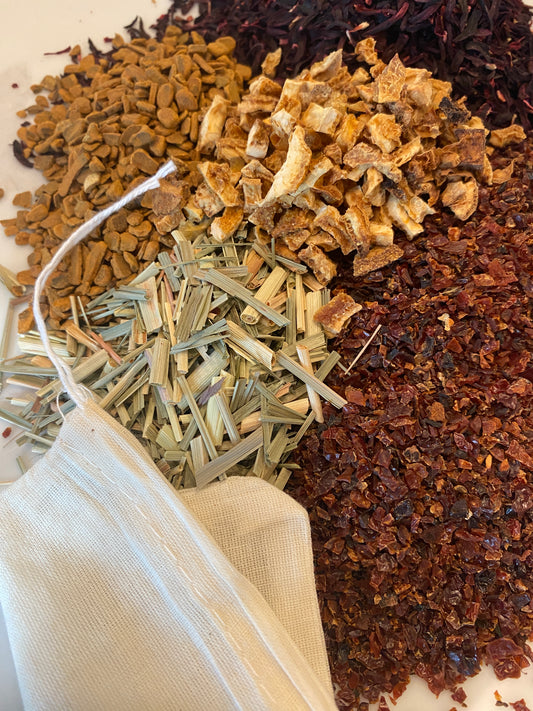 I recently bought the 3oz Healthy Cool-Aid at the Manitowoc Winter Market while I was home for the holidays. Just brewed up a batch and it's great! I was stoked to find a reusable muslin tea bag inside. Perfect for after yoga hydration.